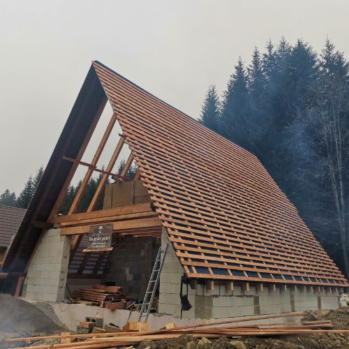 Stavba krovu je náročná a dôležitá fáza pri výstavbe domu. Tento proces zahŕňa inštaláciu nosných a podpierajúcich konštrukcií, ktoré tvoria základ pre celú strechu. Náročnosť tejto práce spočíva v presnosti merania, striktnom dodržiavaní stavebných noriem a bezpečnostných predpisov, ako aj vo vysokej úrovni zručnosti a skúseností potrebných na manipuláciu s ťažkými materiálmi a nástrojmi. Pri stavbe krovu je tiež dôležité zabezpečiť kvalitné a spoľahlivé materiály, aby sa zabezpečila trvanlivosť a stabilita celej konštrukcie. Výsledky našej práce si môžete pozrieť v galérii.